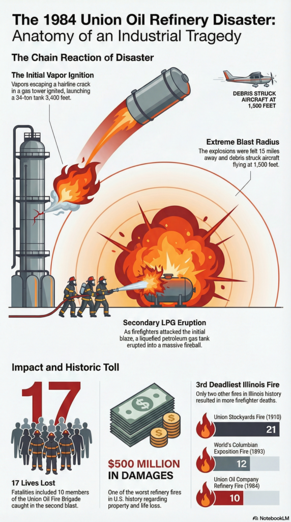 At a refinery in Romeoville, Illinois 17 lives were lost. 10 were members of the refinery fire brigade who responded to the explosion only to be caught in the second event. Multiple critical errors occurred to lead to this failure point including the overall process and the inspection and testing of vessel integrity after repair.